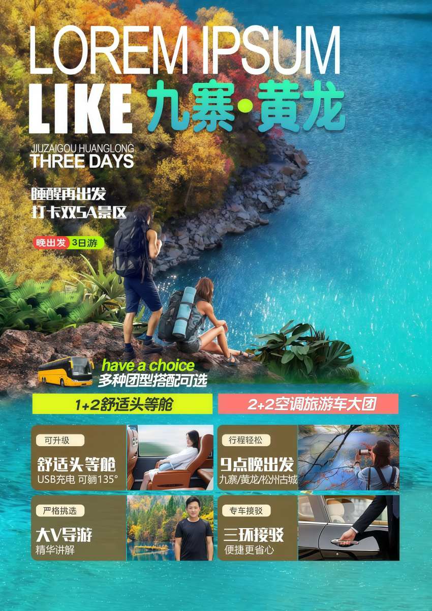 2、导游服务说明:常规散客拼团,旅行社安排随车导游一名,提供行程解说及沿途食宿安排及沿途风土人情介绍服务,不陪同客人进入有讲解员或属于自然风景观光的旅游景区(例:九寨沟及牟托寨景区有专业讲解员,黄龙景区为自然风景观光)
