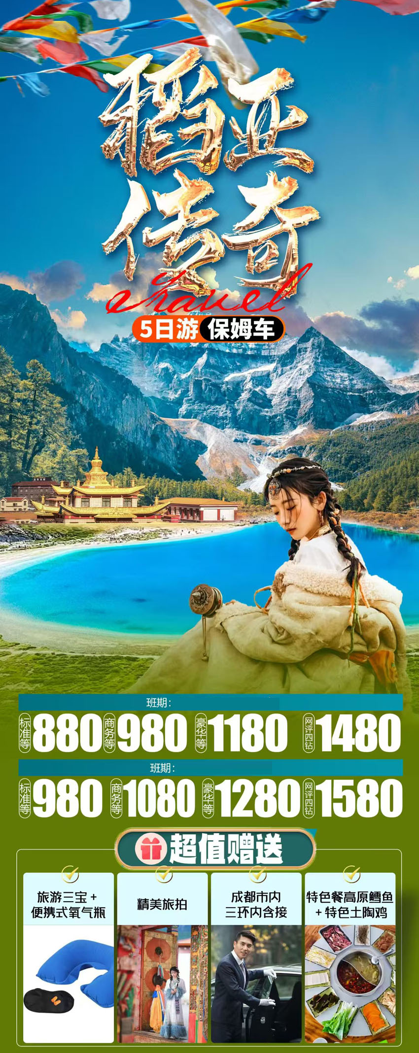 2、 赠送木雅景区:门票90 元 /人 已含(游客不参加不等价退换,赠送门票不在享受景区门票二次优惠)