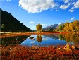 红草地:极目远望,一片红彤彤的景致映入眼帘,红得那么热烈,那么艳丽,也那么醉人。在或黄或绿的白杨树的衬托下,灿灿生辉,妩媚无比。一株株红草与云南中甸的“狼 毒” 类似,红草的植株较小较细。植物由绿变红的原因是秋天的气候条件在促使叶子中糖的积累和变化,糖经过复杂的反应链积累成红色色素,导致秋叶变红,这 是植物衰老的标志。每年九、十月份是拍摄红草地的最佳时节。近年因红草枯萎,景色逊色了很多。